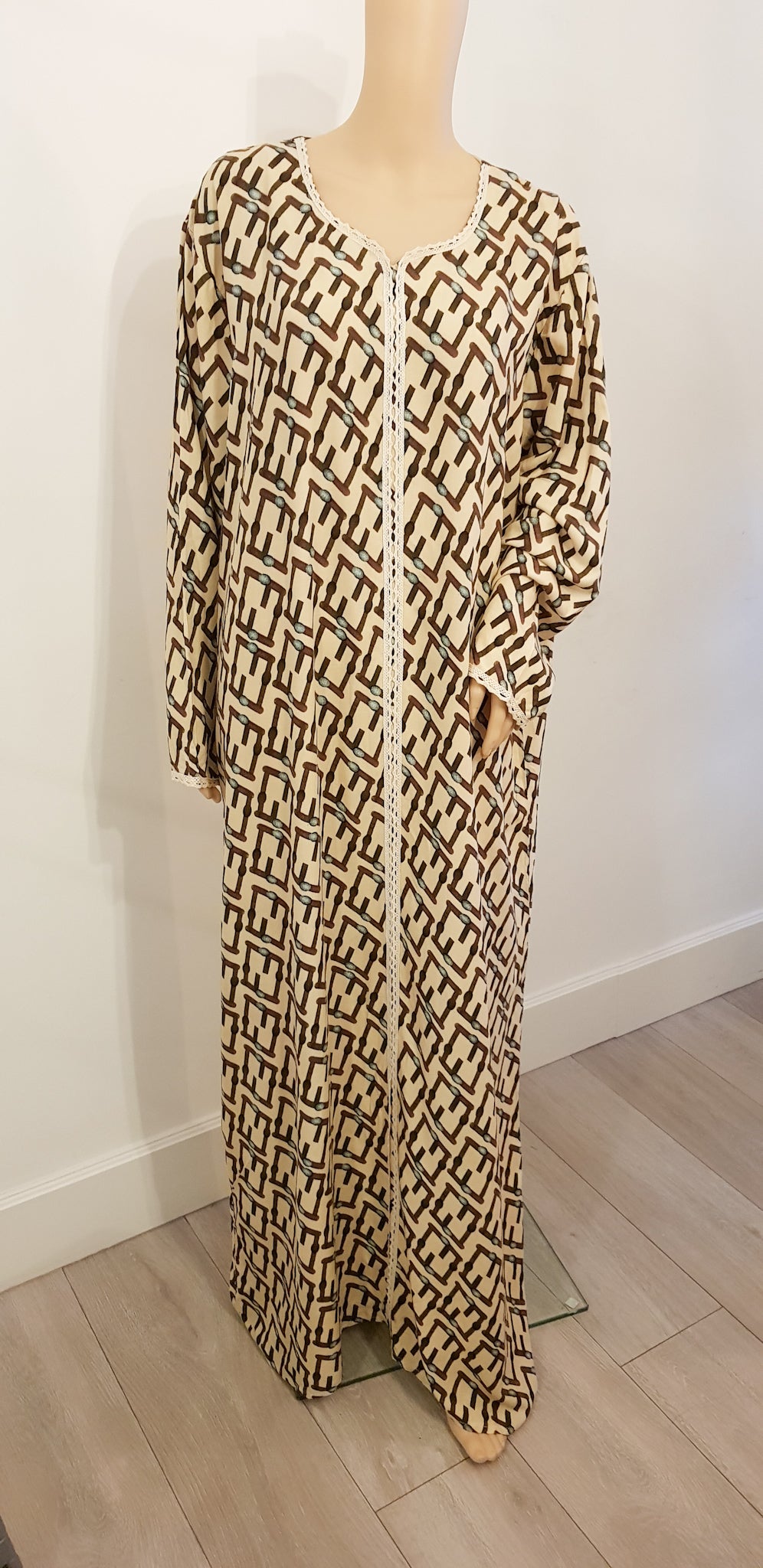 Cream & Kaki Boxes - Long Sleeve maxi dress