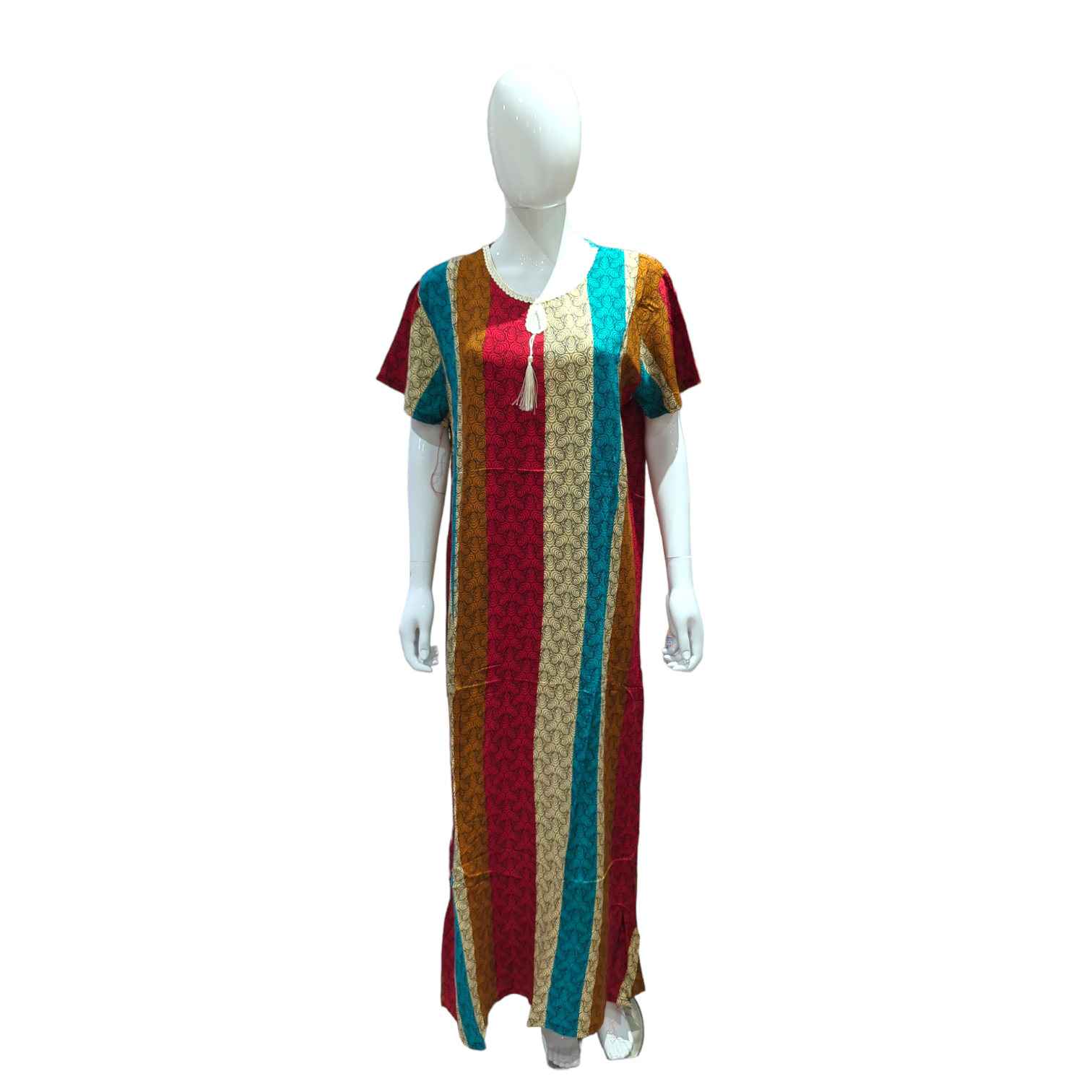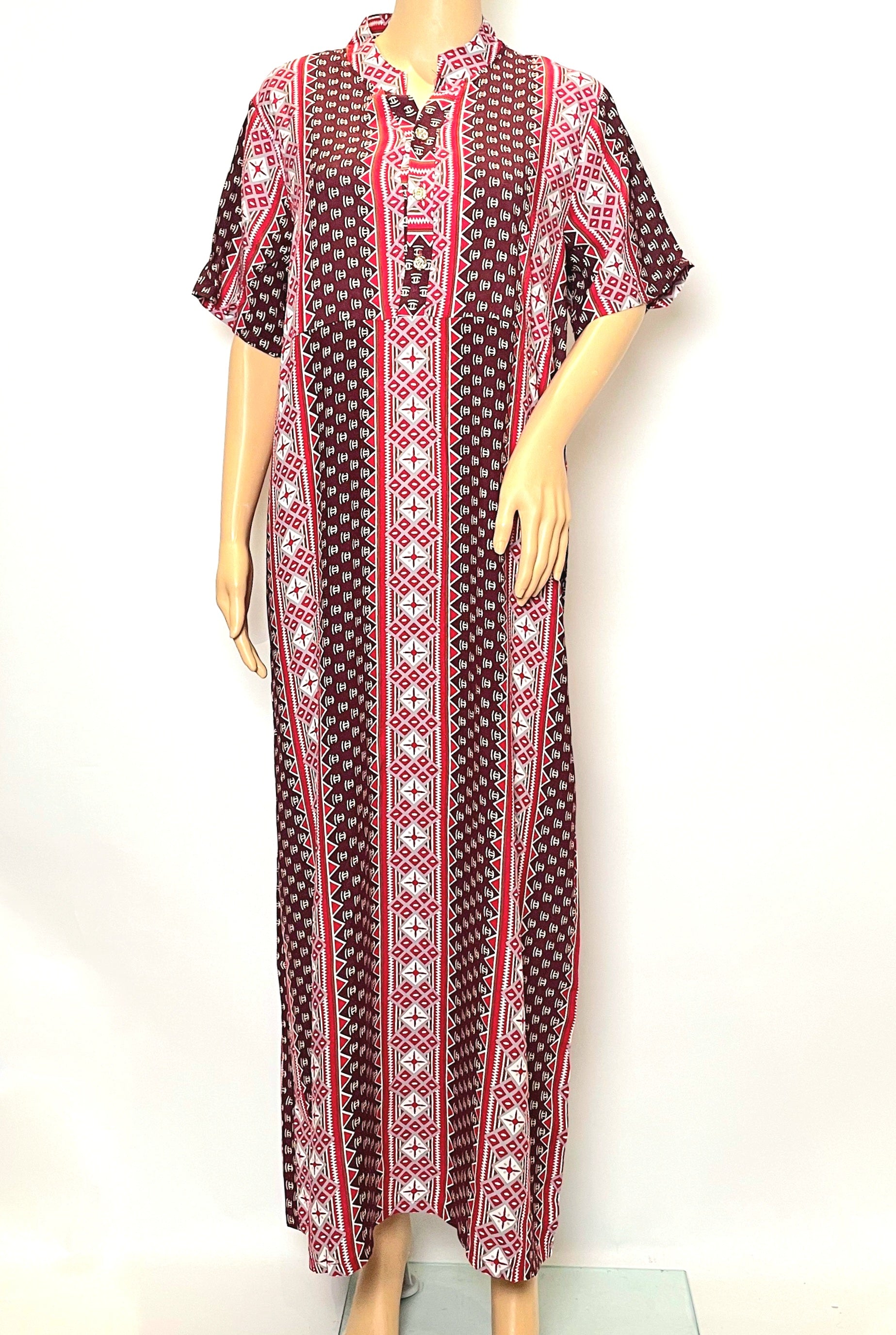 Moroccan Style Stripes Red/Blue - Short Sleeve maxi dress