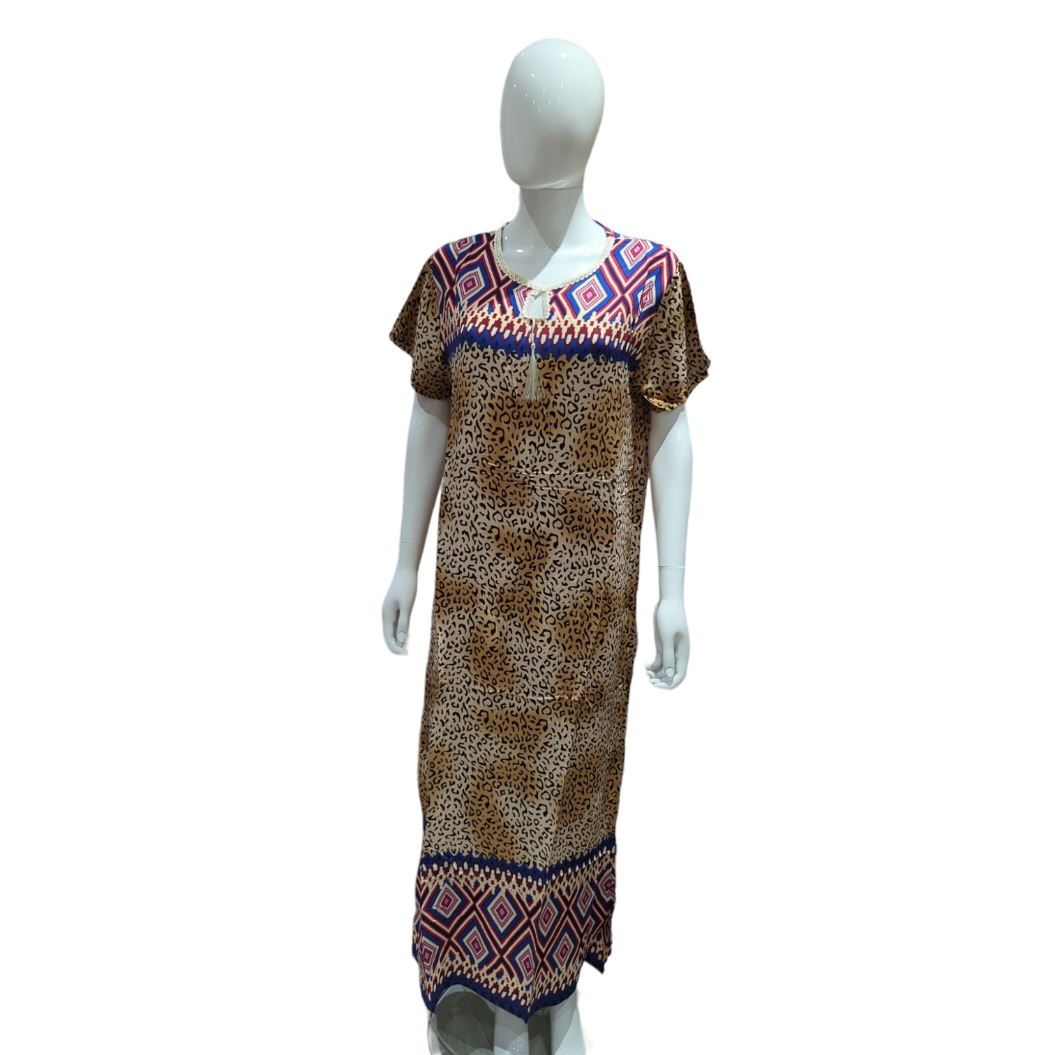 Moroccan Style Leopard Blue - Short Sleeve maxi dress
