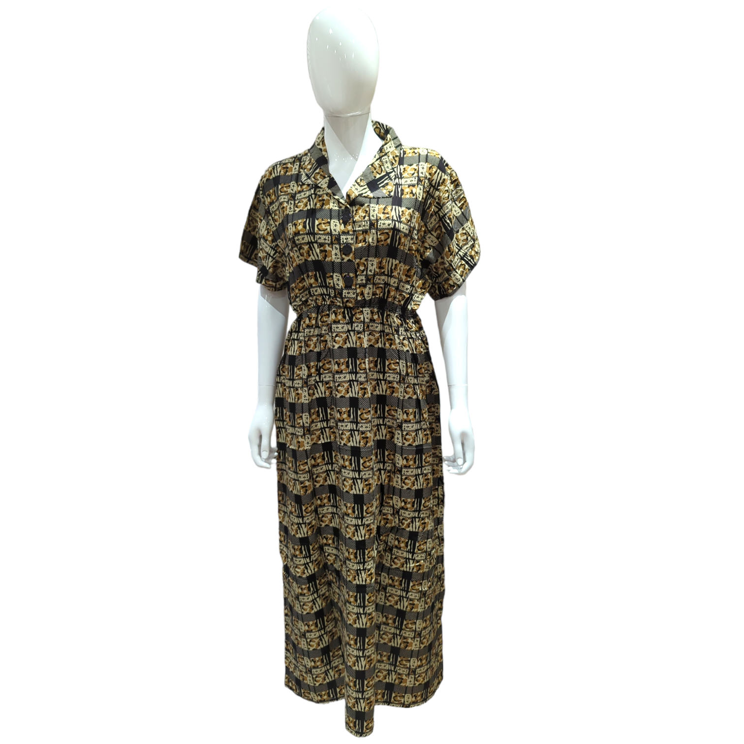 Wild Beige - Short Sleeve - With Buttons & Elasticated Waist maxi dress