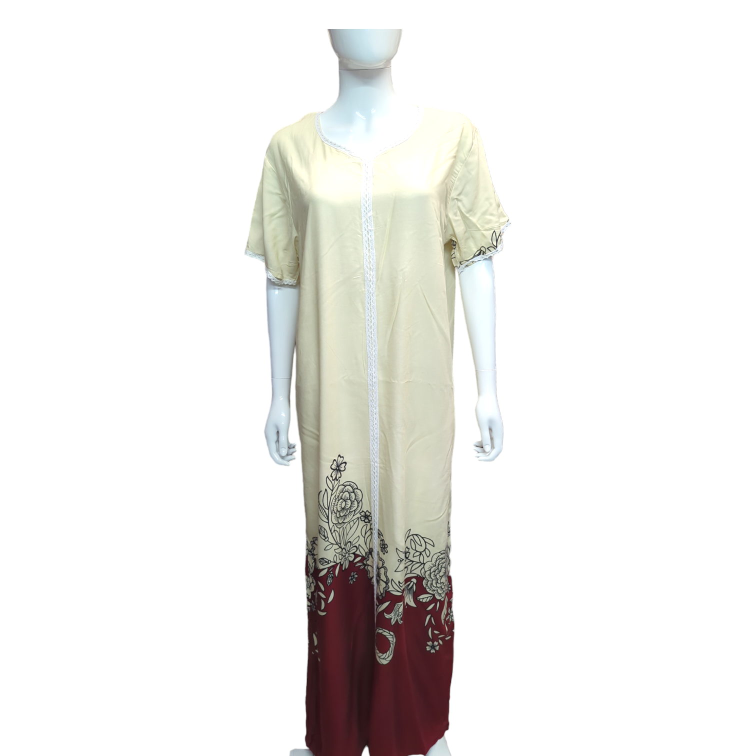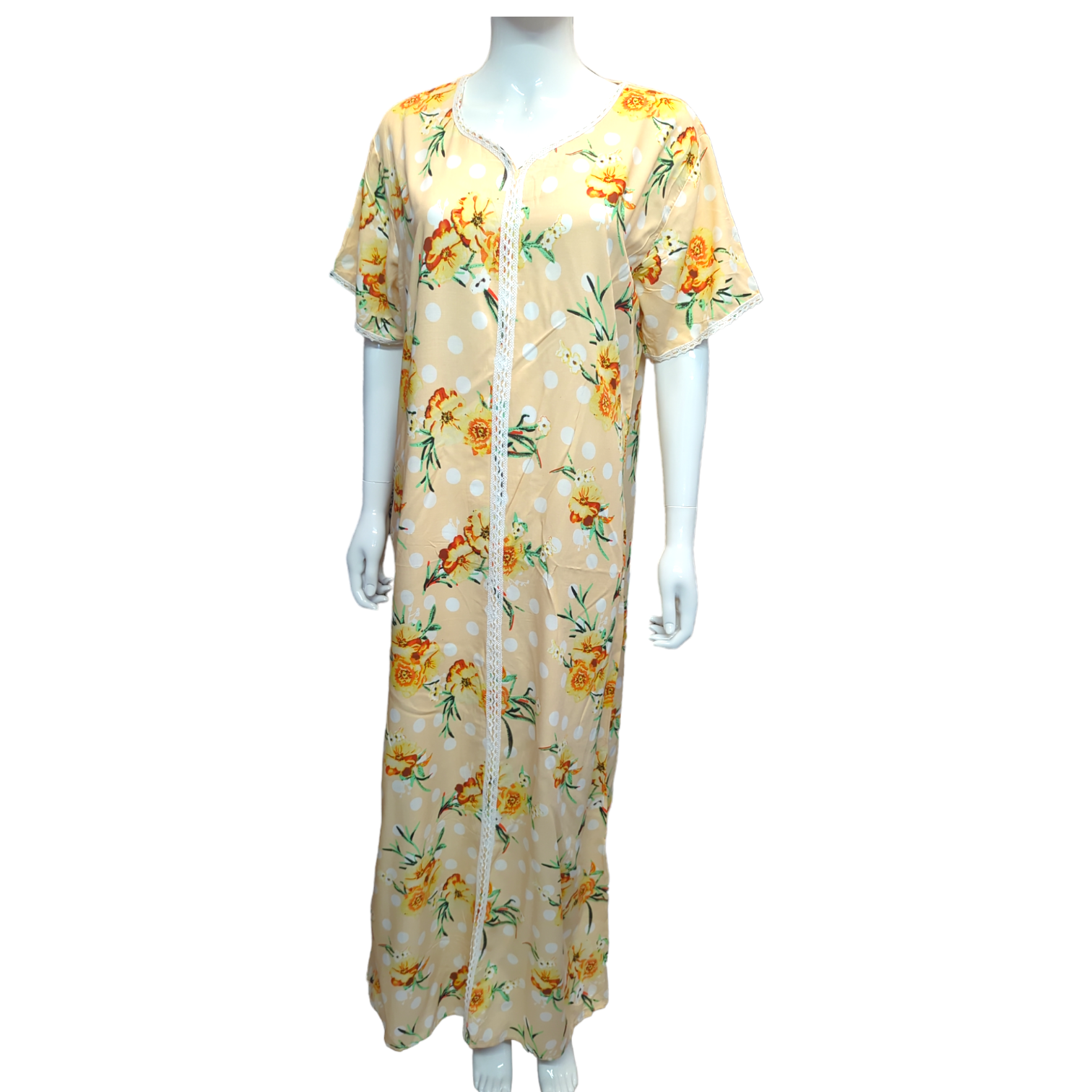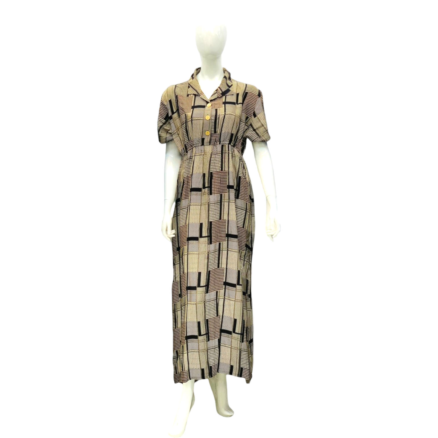 Maze Beige - Short Sleeve - With Buttons & Elasticated Waist maxi dress