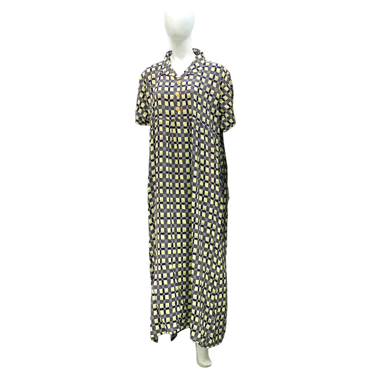 Beige Check - Short Sleeve - With Buttons & Elasticated Waist maxi dress